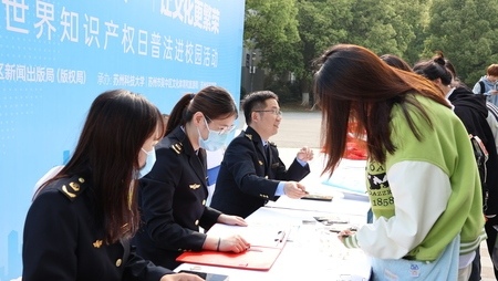 在活動(dòng)現(xiàn)場(chǎng),吳中區(qū)文化市場(chǎng)綜合執(zhí)法大隊(duì)設(shè)置了版權(quán)保護(hù)咨詢臺(tái),由執(zhí)法隊(duì)員解釋“什么是版權(quán)登記”、“版權(quán)登記怎么做”,通過(guò)發(fā)放宣傳手冊(cè)、以案釋法和有獎(jiǎng)問(wèn)答等方式,引導(dǎo)大家積極參與版權(quán)保護(hù)活動(dòng)。本次活動(dòng),有效激勵(lì)了知識(shí)產(chǎn)權(quán)的創(chuàng)新創(chuàng)造與運(yùn)用,增強(qiáng)了廣大師生知識(shí)產(chǎn)權(quán)保護(hù)意識(shí),為加強(qiáng)版權(quán)保護(hù)營(yíng)造良好氛圍。