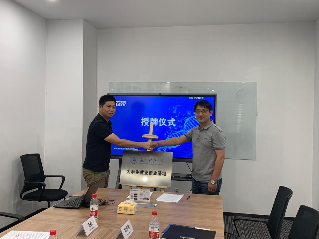 蘇州博騰生物制藥有限公司成立于2018年,背后依托于上市公司—重慶博騰制藥科技股份有限公司,主要致力于為全球制藥公司、新藥研發(fā)機構(gòu)等提供從臨床早期研究直至藥品上市全生命周期所需的醫(yī)藥中間體及原料藥定制研發(fā)和定制生產(chǎn)服務(wù)的國家高新技術(shù)企業(yè)。目前公司有近二十名畢業(yè)生就職于該公司,2017屆生物技術(shù)專業(yè)畢業(yè)生翁凱作為員工代表介紹了在博騰生物入職以來的切身感受和體驗并表示歡迎學(xué)弟學(xué)妹們加入博騰。李良智、苗雪強代表學(xué)院與蘇州博騰生物制藥有限公司簽訂產(chǎn)學(xué)研合作協(xié)議并共同為永樂高131net老員工就業(yè)創(chuàng)業(yè)基地揭牌。雙方表示將加強深度合作,創(chuàng)新校企合作人才培養(yǎng)模式,重點突出新一代應(yīng)用型本科人才的培養(yǎng),建立健全校企深度合作、緊密結(jié)合、優(yōu)勢互補、共同發(fā)展的合作機制。