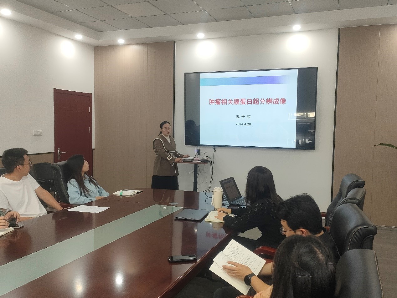 學(xué)術(shù)報(bào)告環(huán)節(jié),生物系張建梅博士和化學(xué)系隗予榮博士分別作主題發(fā)言。隗予榮以《腫瘤相關(guān)膜蛋白超分辨成像》為題,展示了其在腫瘤膜蛋白成像領(lǐng)域的創(chuàng)新成果。張建梅以《蛋白質(zhì)甲基轉(zhuǎn)移酶在癌癥中的功能》為題,分享了其在表觀遺傳調(diào)控機(jī)制研究中的最新發(fā)現(xiàn)。報(bào)告環(huán)節(jié)引發(fā)熱烈反響,參會(huì)教師圍繞材料表征技術(shù)、跨學(xué)科交叉點(diǎn)等議題展開深入探討。