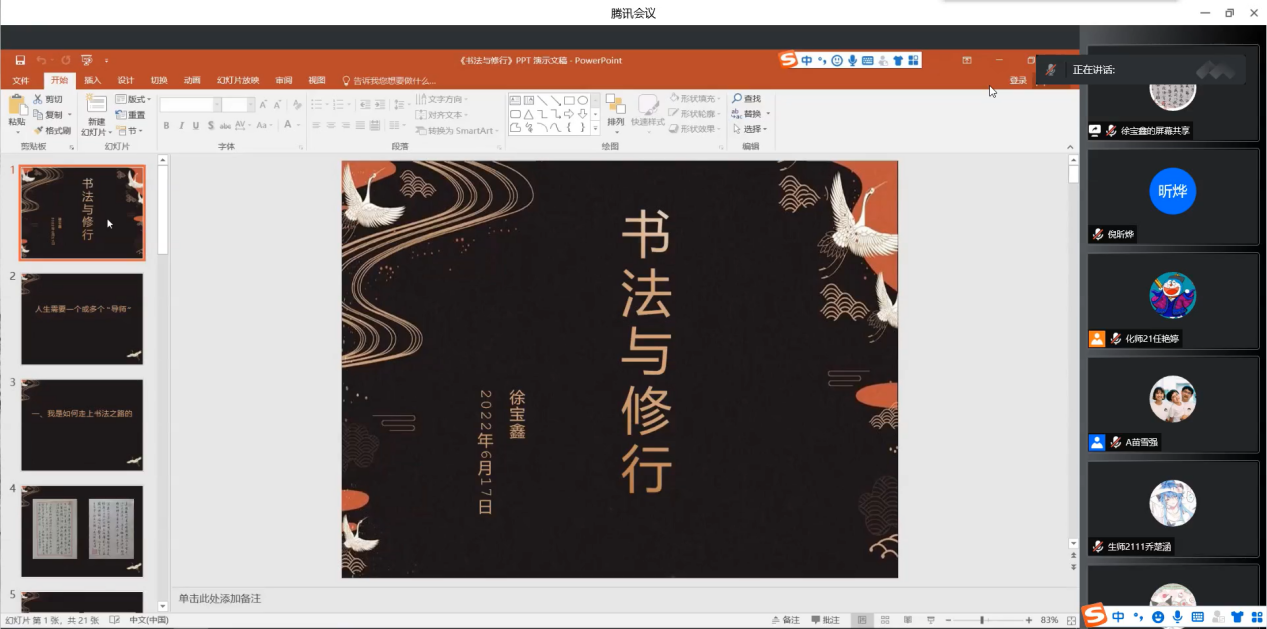 徐寶鑫分享了自己書(shū)法與慈善之路的經(jīng)歷,并展示《蘭亭序》等多幅書(shū)法作品。他強(qiáng)調(diào),書(shū)寫(xiě)的過(guò)程就是修行,“靜”是修行的最高境界,能真實(shí)表達(dá)自己的心意便是行善積德。苗雪強(qiáng)表示,同學(xué)們要嚴(yán)格要求自己,對(duì)社會(huì)要多做貢獻(xiàn),時(shí)刻督促自己早日成為有理想,有道德,有學(xué)識(shí),有愛(ài)心的好老師。
