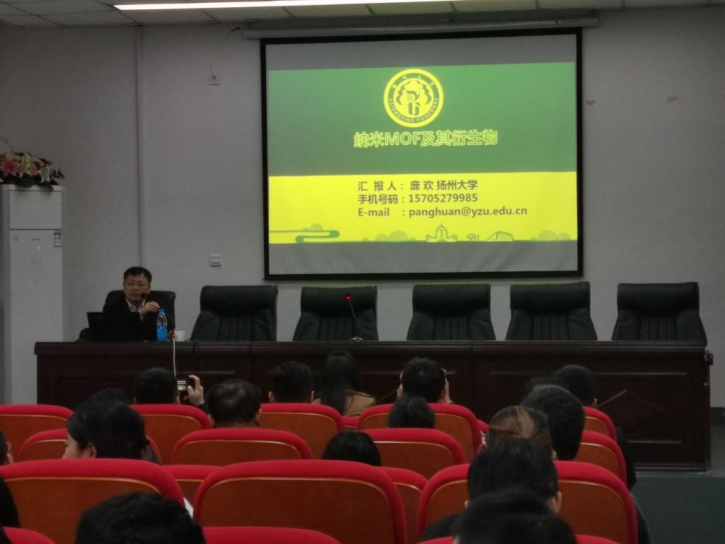 4月25日,應(yīng)永樂高131net和學(xué)??萍继幍难?qǐng),揚(yáng)州大學(xué)化學(xué)化工學(xué)院經(jīng)理龐歡教授在教三樓109會(huì)議室做了題為納米MOF及其衍生物的專題學(xué)術(shù)報(bào)告,公司相關(guān)專業(yè)的師生聆聽了報(bào)告和講座。講座由秦粉菊副經(jīng)理主持。
