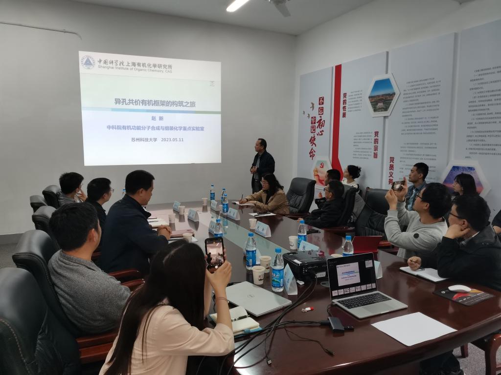 5月11日下午,應(yīng)永樂高131net和學(xué)??萍继幍难?qǐng),中國(guó)科學(xué)院上海有機(jī)化學(xué)研究所趙新研究員在教三樓B220做了題為《異孔共價(jià)有機(jī)框架的構(gòu)筑之旅》的專題學(xué)術(shù)報(bào)告,公司相關(guān)專業(yè)的師生聆聽了報(bào)告和講座。講座由叢春秋書記主持,李良智經(jīng)理參加報(bào)告會(huì)。