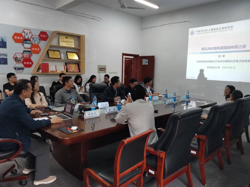 會(huì)后,趙新研究員還與參會(huì)的化學(xué)與材料領(lǐng)域的青年教師和同學(xué)進(jìn)行了展開了熱烈的交流探討,并對(duì)相關(guān)研究工作提出了獨(dú)特的見解。