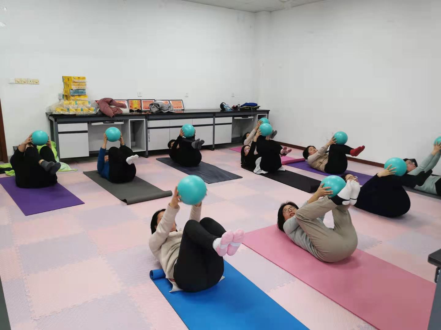 永樂高131net現(xiàn)有女教工43人,女老師們平時工作繁忙,經常久坐、久站,缺乏鍛煉。鑒于此,學院領導支持并改善現(xiàn)有“教工小家”條件,比如配置地墊、普拉提球、安排專業(yè)健身教練等,為女教師們創(chuàng)造了良好的鍛煉環(huán)境。