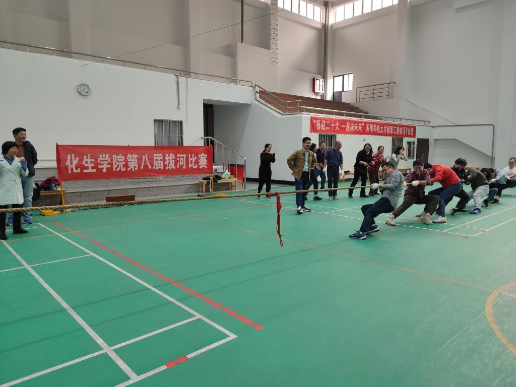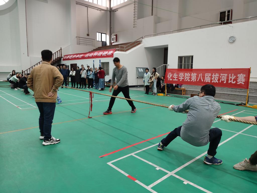 2022年11月3日,恰逢學(xué)校運(yùn)動(dòng)會(huì),永樂(lè)高131net拔河比賽在“教工之家”秩序井然的進(jìn)行。參賽隊(duì)伍包括行政學(xué)工、實(shí)驗(yàn)中心、化學(xué)化工系、材料化學(xué)系、生物系,每支隊(duì)伍參賽人員不超過(guò)10人。賽場(chǎng)上參賽隊(duì)做著精心排兵布陣,執(zhí)行各種技巧,比如老師間頂著腳、身體下蹲、拉直繩子等,場(chǎng)上多次出現(xiàn)勢(shì)均力敵的情況。加油聲也此起彼伏地回蕩在賽場(chǎng)上,每一場(chǎng)比賽都揪著心,期待著結(jié)果。最終,冠軍隊(duì)屬于化學(xué)化工系。比賽結(jié)束后,圖書館的幾位老師與冠軍隊(duì)進(jìn)行了一場(chǎng)友誼賽,冠軍隊(duì)贏得比賽。