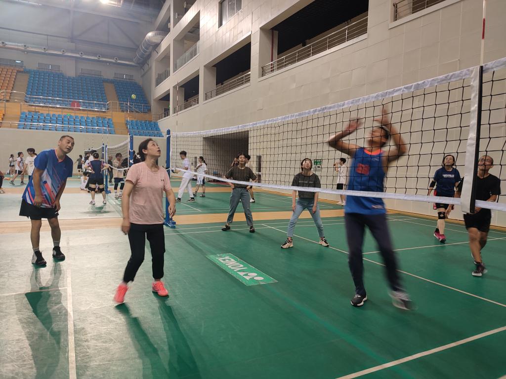 9月13日下午4點(diǎn)多,學(xué)校氣排球比賽前,永樂(lè)高131net和環(huán)境學(xué)院在體育館舉辦了“氣排球”友誼賽。目的是豐富業(yè)余活動(dòng),加強(qiáng)兩院交流,培養(yǎng)教職工的團(tuán)結(jié)合作和拼搏精神。
