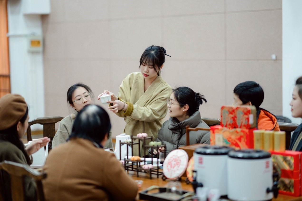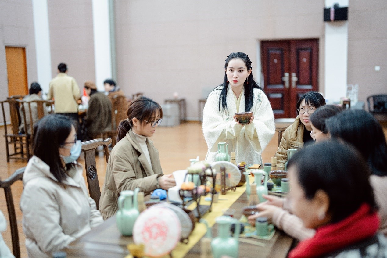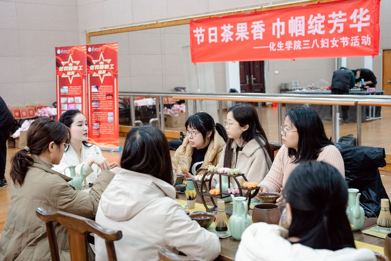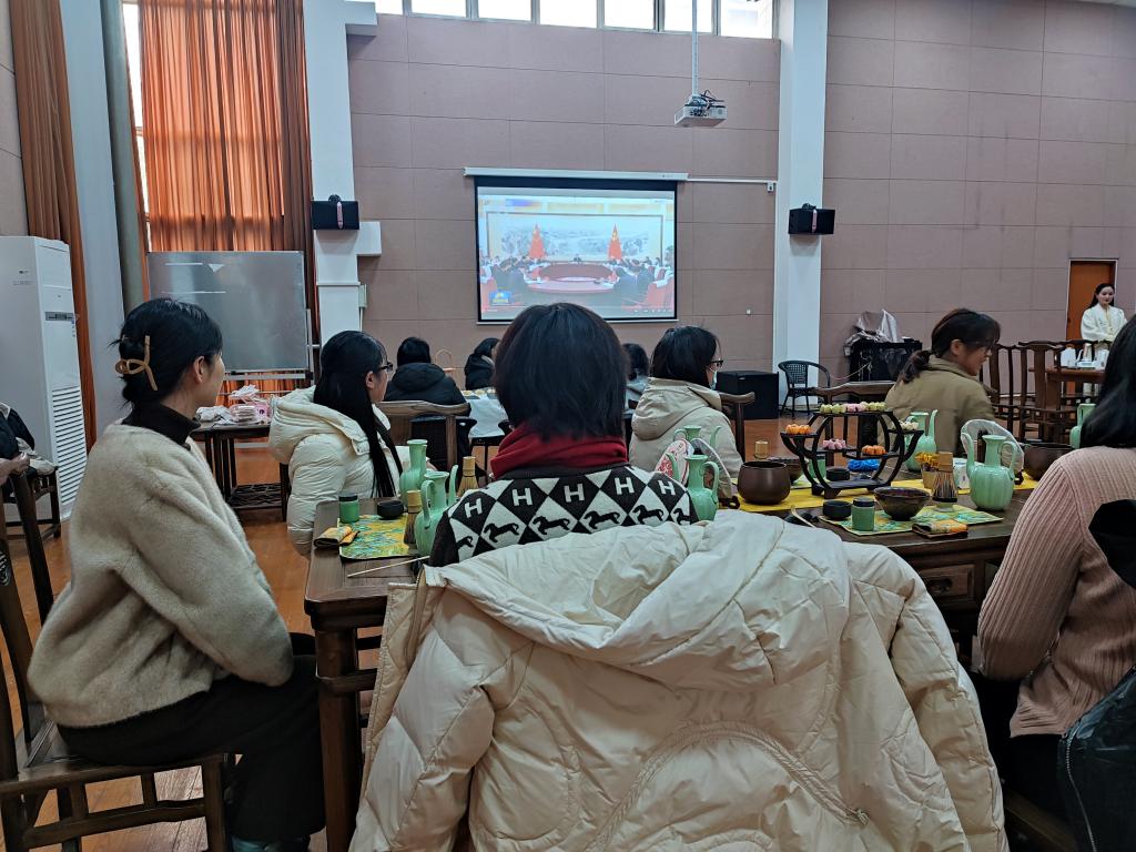 下午1:00,老師們陸續(xù)到達活動地點,學(xué)習(xí)和觀摩了兩位優(yōu)秀老師的風(fēng)采展示?;顒娱_始,先觀看了習(xí)近平總書記關(guān)于工人階級和工會工作的重要論述、關(guān)于婦女工作的重要論述相關(guān)視頻。之后活動分為了四個區(qū)域:點茶體驗、茶點制作、泡茶技藝、茶點品嘗區(qū),老師們可以輪流到每個區(qū)域充分體驗和學(xué)習(xí)。在茶點老師的介紹和指導(dǎo)下,了解了點茶的歷史淵源,并跟隨專業(yè)師傅們的細心指導(dǎo)下,親自嘗試了點茶、泡茶和制作茶點的技藝,同時在制作的過程中互相交流經(jīng)驗和分享感受。