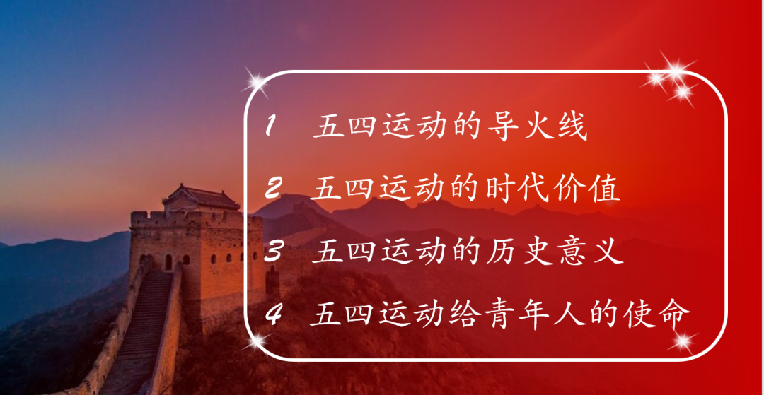 第三板塊中,主講人向我們講解了五四運動的歷史意義,即五四運動既是一次愛國的政治運動,又是一次文化運動,同時還是一次空前的思想解放運動。最后,主講人號召同學(xué)們共同學(xué)習(xí)五四精神,錘煉思想品德,堅定理想信念。