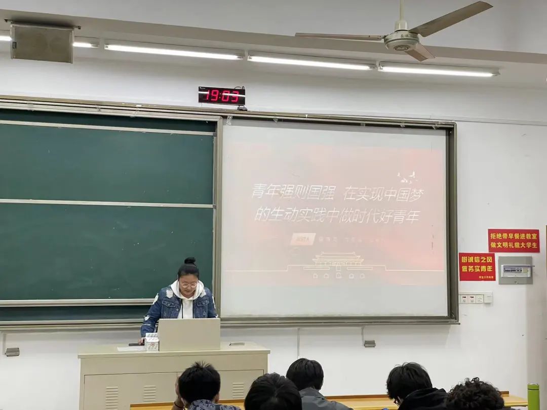 班會上團支書指出青年是國家之希望、民族之棟梁,要堅持人民至上、生命至上的原則。青年興則國興,青年強則國強,現代青年應筑牢信仰之基、后植為民情懷、踐行使命擔當,在實現中國夢的生動實踐中做時代好青年。