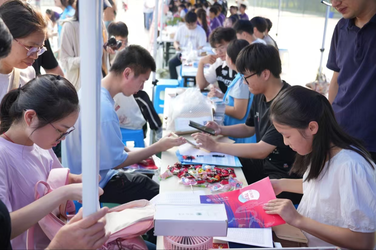 為迎接新生,班助以及志愿者們都嚴(yán)陣以待。他們熱情地接下新生的行囊,引導(dǎo)新生報(bào)到,帶領(lǐng)他們熟悉地形,領(lǐng)略校園風(fēng)光。