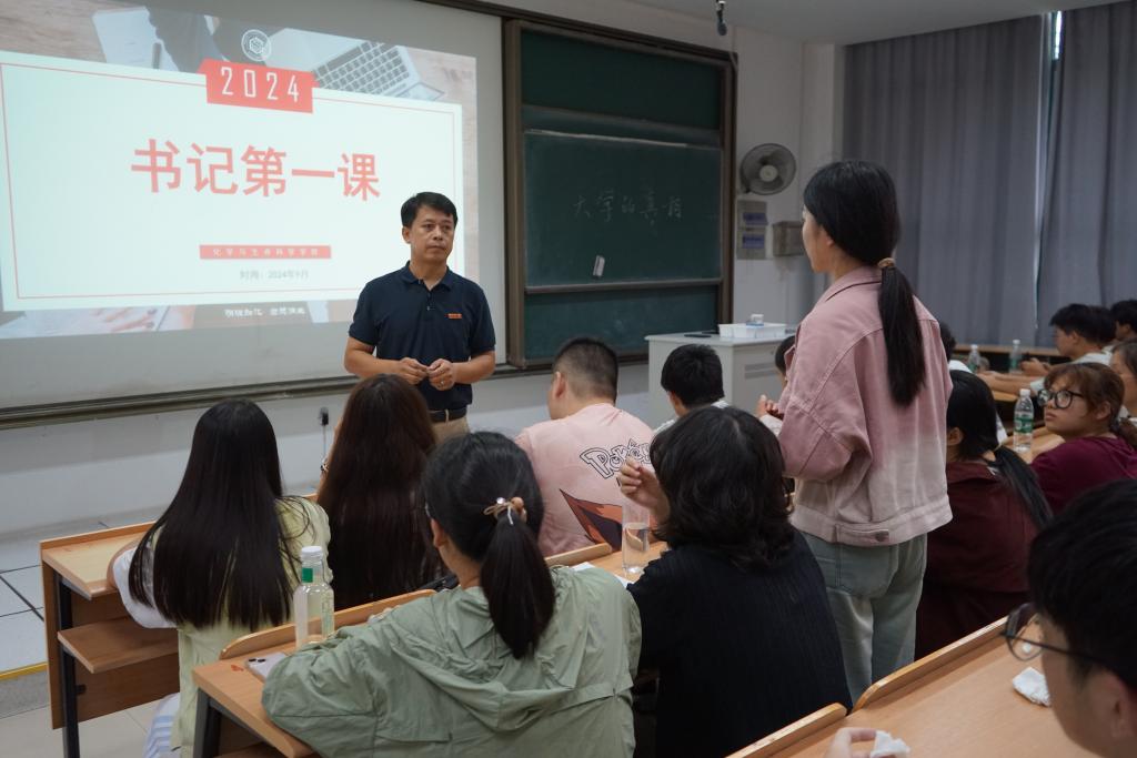 叢春秋給2024級(jí)新生帶來(lái)書記第一課,以老員工活的小中大問(wèn)題為導(dǎo)線,與同學(xué)們共同探討。叢春秋指出老員工應(yīng)當(dāng)多閱讀,且閱讀范圍要有廣度,從專業(yè)課程到人文自然均要有所涉獵。他強(qiáng)調(diào)老員工應(yīng)當(dāng)做到真善美,即待人真誠(chéng),為人善良,言行美好,要在大學(xué)學(xué)到真本領(lǐng)。