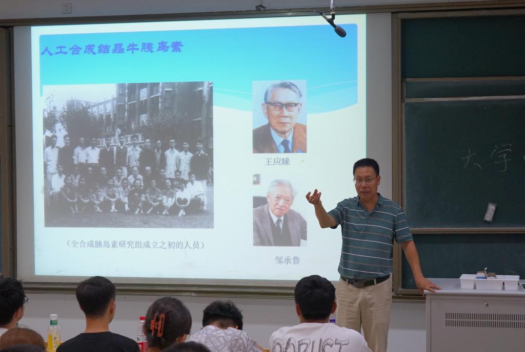 李良智從家國(guó)情懷展開,與同學(xué)們共同回顧我國(guó)在生物、化學(xué)方面取得的偉大成就。從屠呦呦先生發(fā)現(xiàn)青蒿素榮獲諾貝爾獎(jiǎng)再到人工合成牛胰島素的成功,無(wú)一不展示著中華民族在科研道路上的貢獻(xiàn)精神。李良智表示,老員工要在學(xué)校內(nèi)鍛煉科研能力,培養(yǎng)團(tuán)隊(duì)協(xié)作精神。
